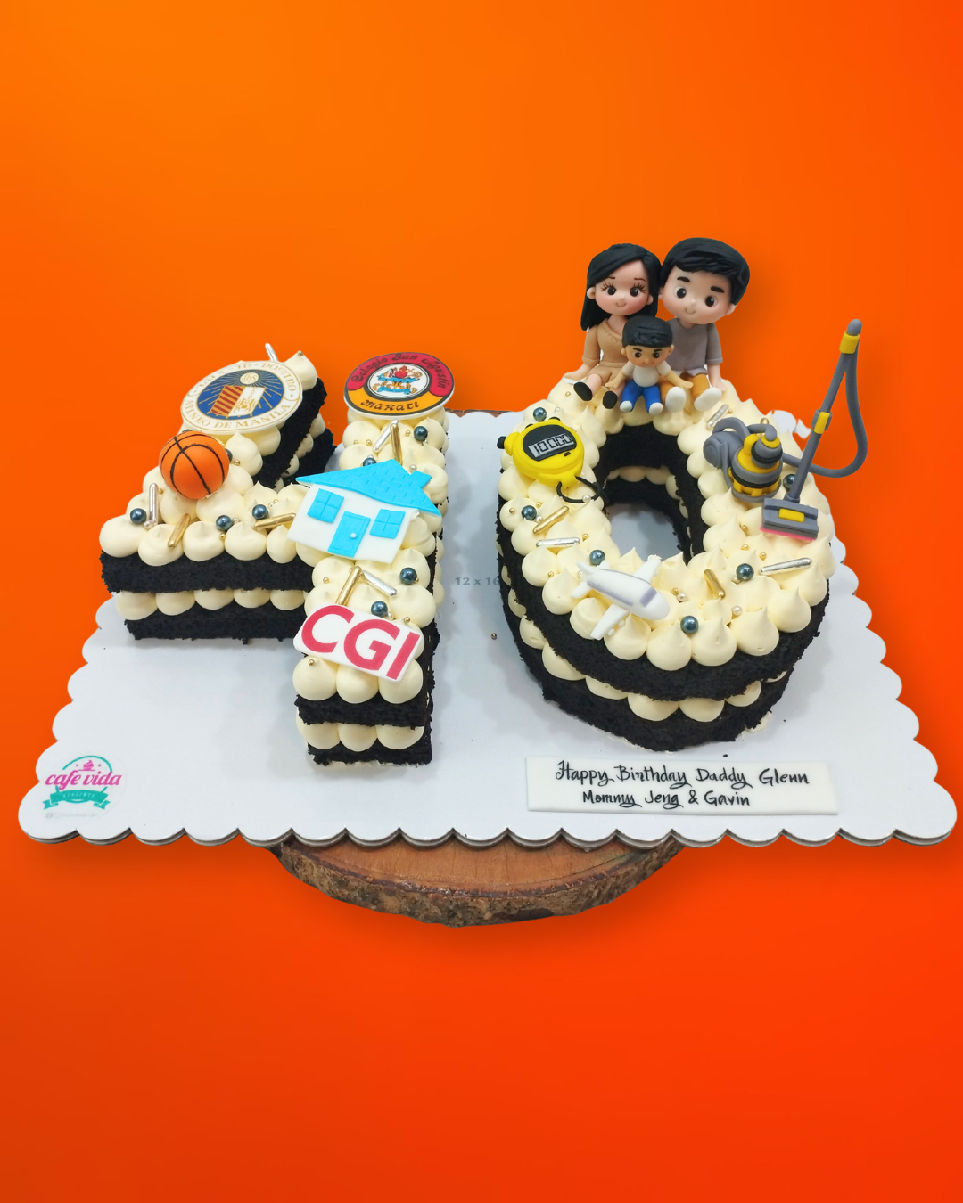 Celebrate life’s biggest milestones with this custom monogram cake, crafted from rich chocolate layers and creamy frosting. Decorated with fondant figures, personalized toppers, and edible details that tell your story, this cake is as meaningful as it is delicious.