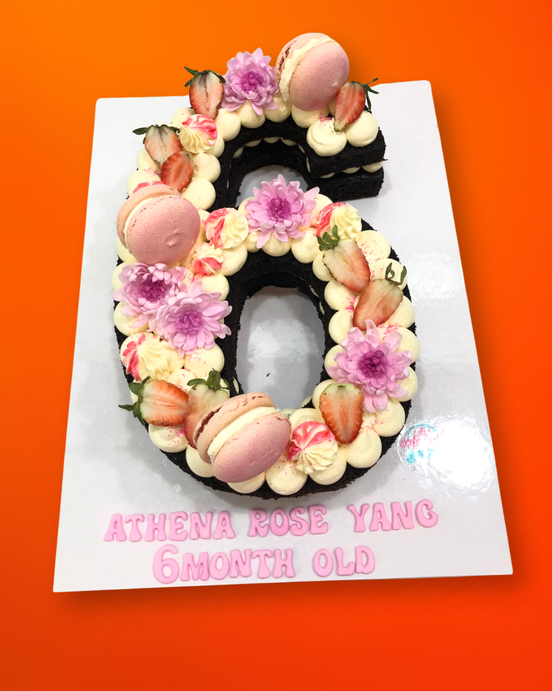 It can also be a chic and elegant number cake layered with moist chocolate sponge and smooth cream filling, topped with fresh strawberries, pastel macarons, and delicate florals