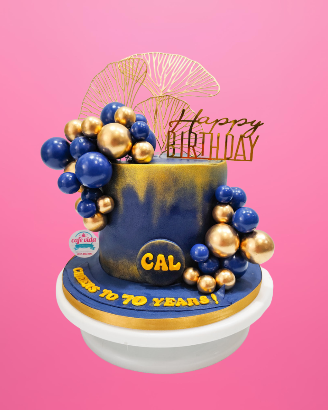 A playful and vibrant cake decorated with colorful fondant balls all around, topped with a whimsical design that adds fun energy to any celebration. Inside, soft sponge layers and creamy filling make it just as delightful to eat as it is to see.