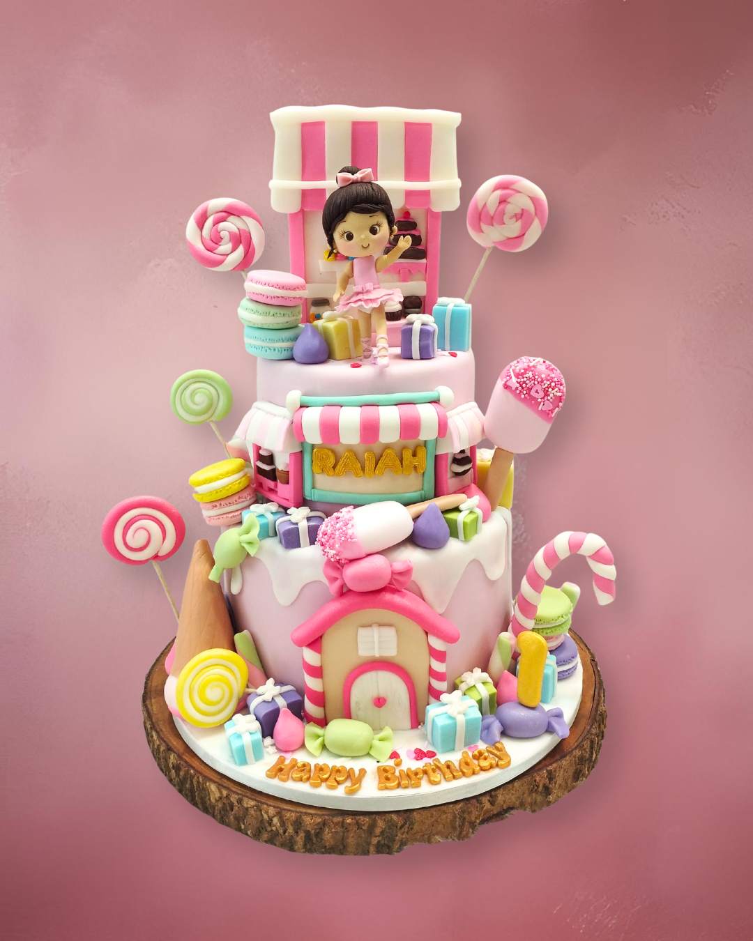 Step into a sweet wonderland with our Candyland Cakes Collection, decorated with lollipops, macarons, chocolates, and colorful candy toppers. Beneath the playful designs are soft, moist cake layers in flavors like chocolate, vanilla, or red velvet — making them as delicious as they are delightful. Perfect for kids and anyone with a sweet tooth!