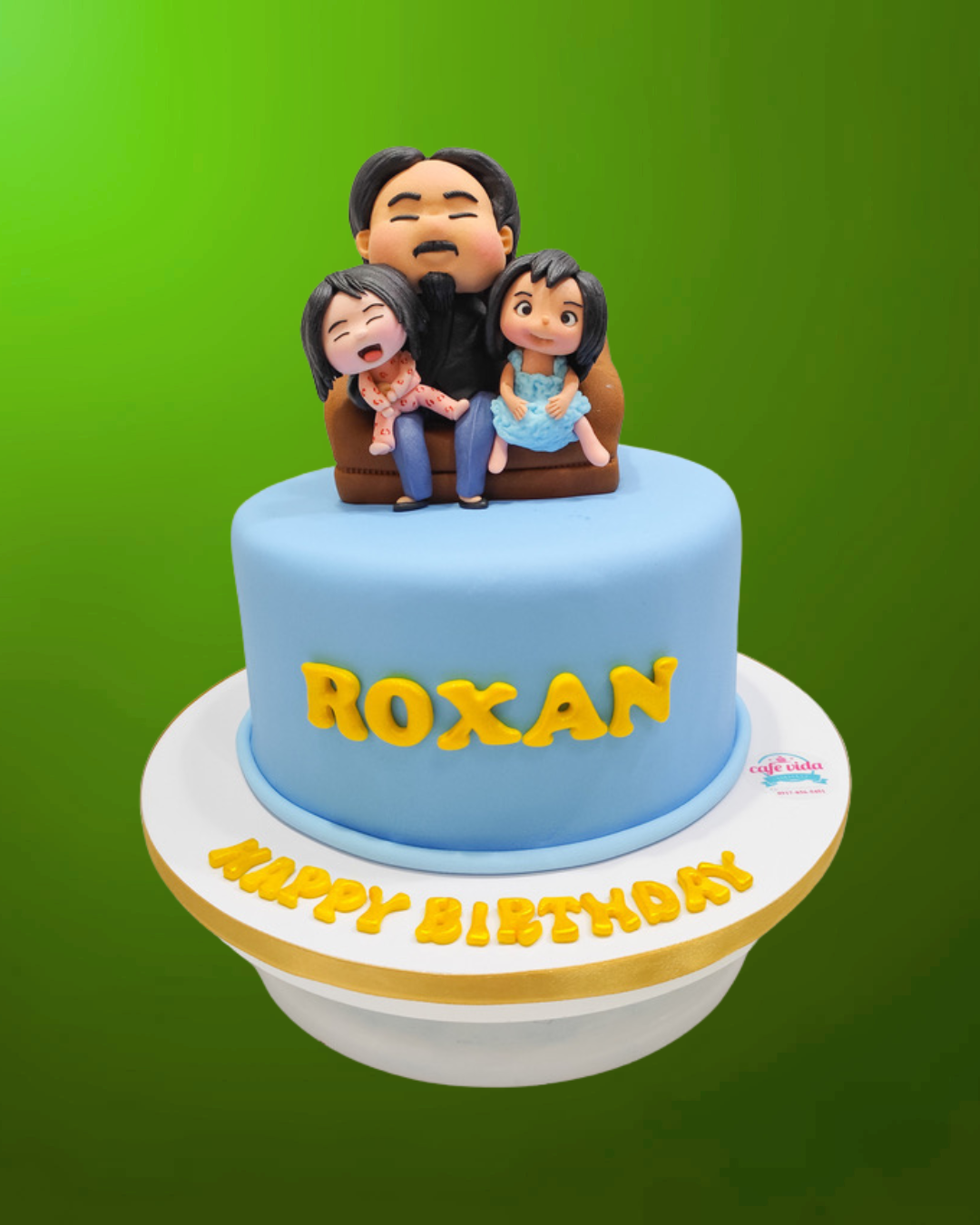 A heartwarming design showing a father relaxing with his two daughters, perfect for birthdays that celebrate family love. The detailed fondant figures sit atop moist, flavorful cake layers, making every slice full of joy.