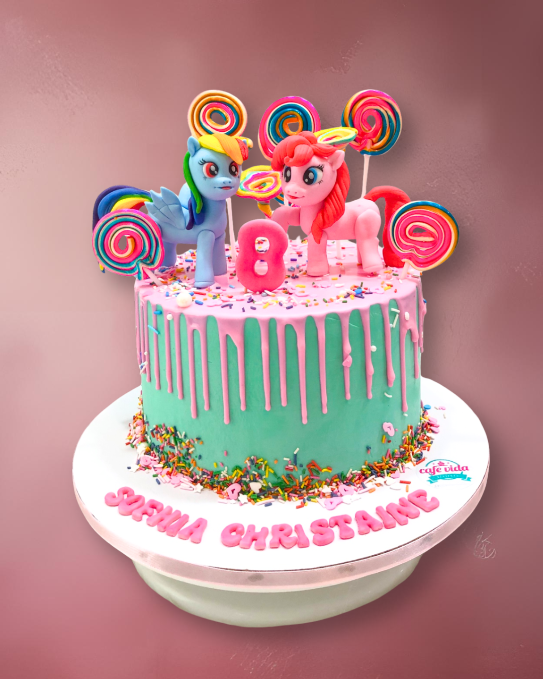 Bright rainbows, clouds, and fondant ponies bring the magic of Equestria to life on these whimsical My Little Pony cakes. Choose from best-selling flavors like moist mocha, red velvet with cream cheese, or vanilla caramel crunch.