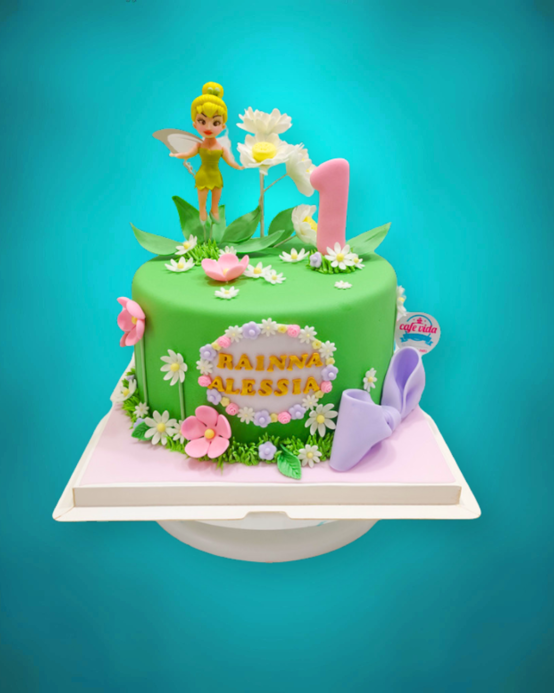A magical Tinkerbell Cake filled with whimsical garden blooms and fairy details, perfect for any little dreamer. Underneath the enchanting décor, fluffy sponge layers and rich cream filling provide a delightful balance of sweetness and texture.