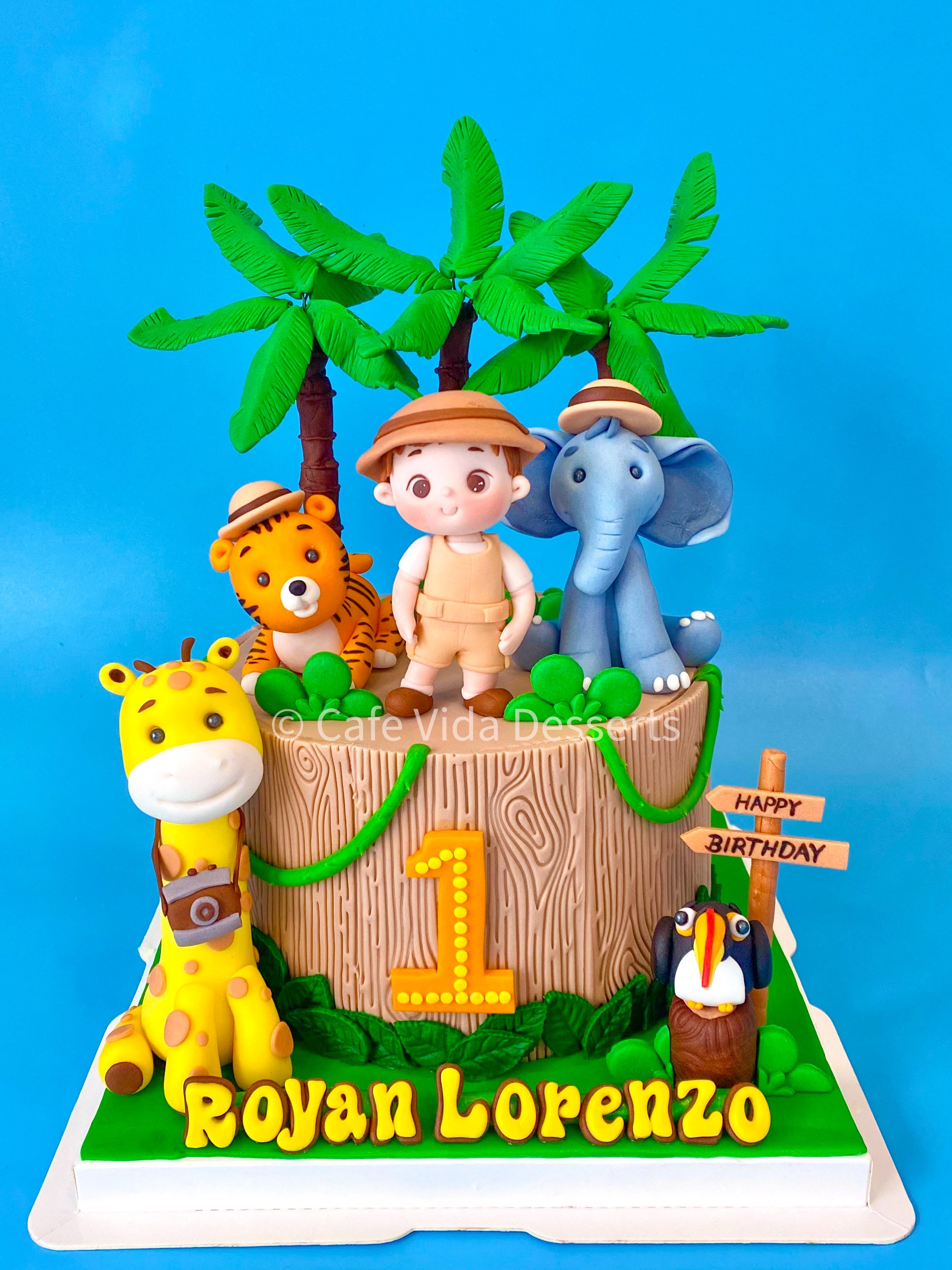 Unveil the Jungle's Delight! 🌴🐅🐘 Our Safari Cake with towering palm trees and adorable guests like Giraffes, Tigers, and Elephants perched on a tree trunk promises a wild adventure in every bite. A sweet safari with the perfect touch of the wild!