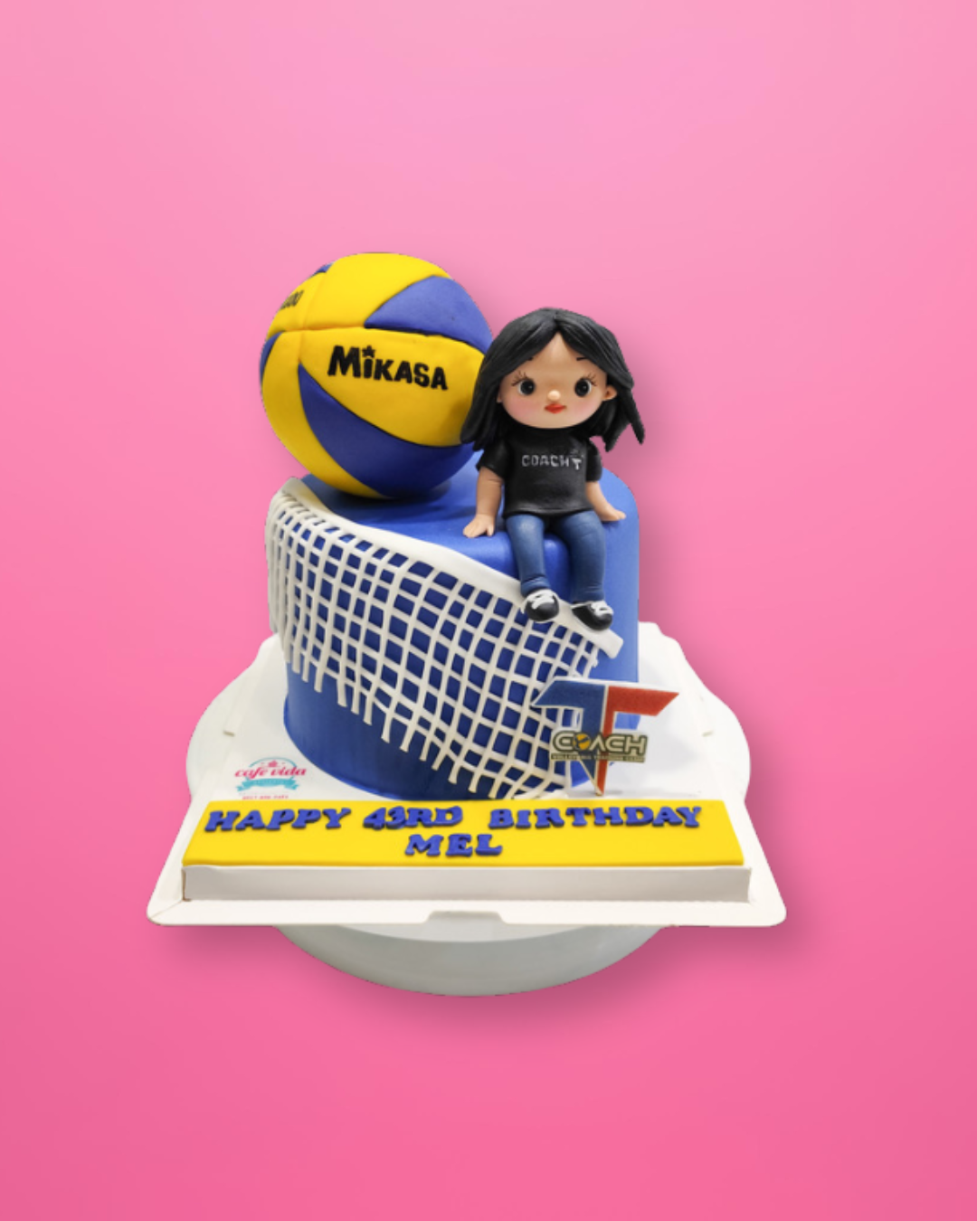 Perfect for volleyball lovers, this cake features a giant Mikasa ball, volleyball net, and custom fondant topper of the celebrant. Bright, sporty, and full of energy—just like the game itself.